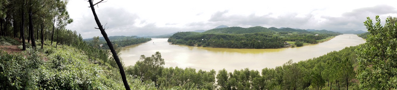 Die nĂ€chste Station muss man sich als winzigen Touristenmarkt vorstellen. Was hier aber interessant ist, ist dass wir beobachten können, wie RĂ€ucherstĂ€bchen und die typischen vietnamesischen KegelhĂŒte in Handarbeit produziert werden. Danach stoppen wir an einem verlassenen, amerikanischen Bunker. Der ist aber nicht so interessant, wie die Aussicht auf den „Parfume River” dahinter.