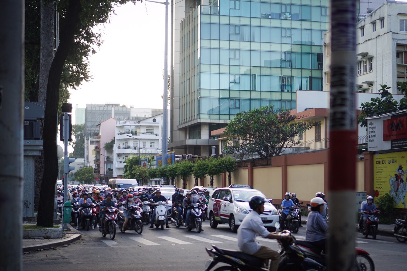 Zurück auf dem Asphalt des ehemaligen Saigons, ziehen wir Straße um Straße um die Häuser. Ich würde so gerne ins Hard Rock Café gehen, da es schon eine Tradition bei mir wurde, diese Lokale in den jeweiligen Städten und Ländern abzuhaken. Wir schlagen eine ungefähre Richtung ein und queren die Straßen, auf denen der Verkehr in Massen fließt.