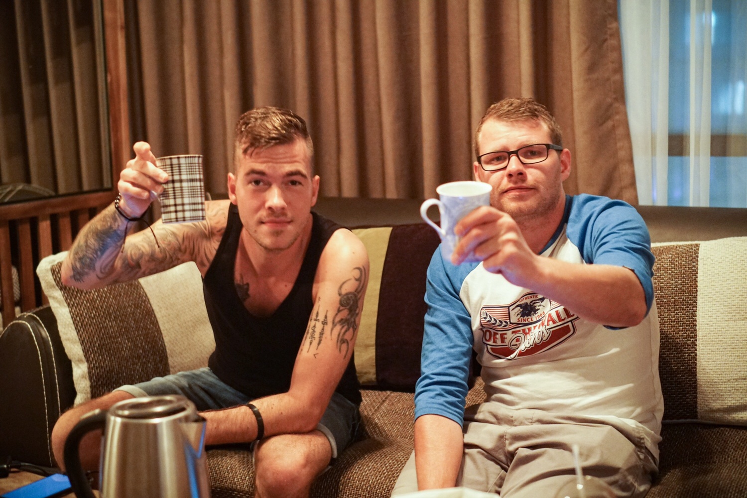Der heutige Tag beginnt bei mir erst ein wenig spĂ€ter. Ich weiß nicht mehr genau, wann ich eingeschlafen bin. Kevin war natĂŒrlich wieder vor mir munter und schickt mir um circa 10:30 Uhr ein Foto von einem „Iced Coffee“. Ich schreib‘ zurĂŒck: Wo bist du? Daraufhin schaut einer hinter meinen Vorhang und sagt: “Hier!” Er ist in der Zwischenzeit wieder zurĂŒck gekommen.