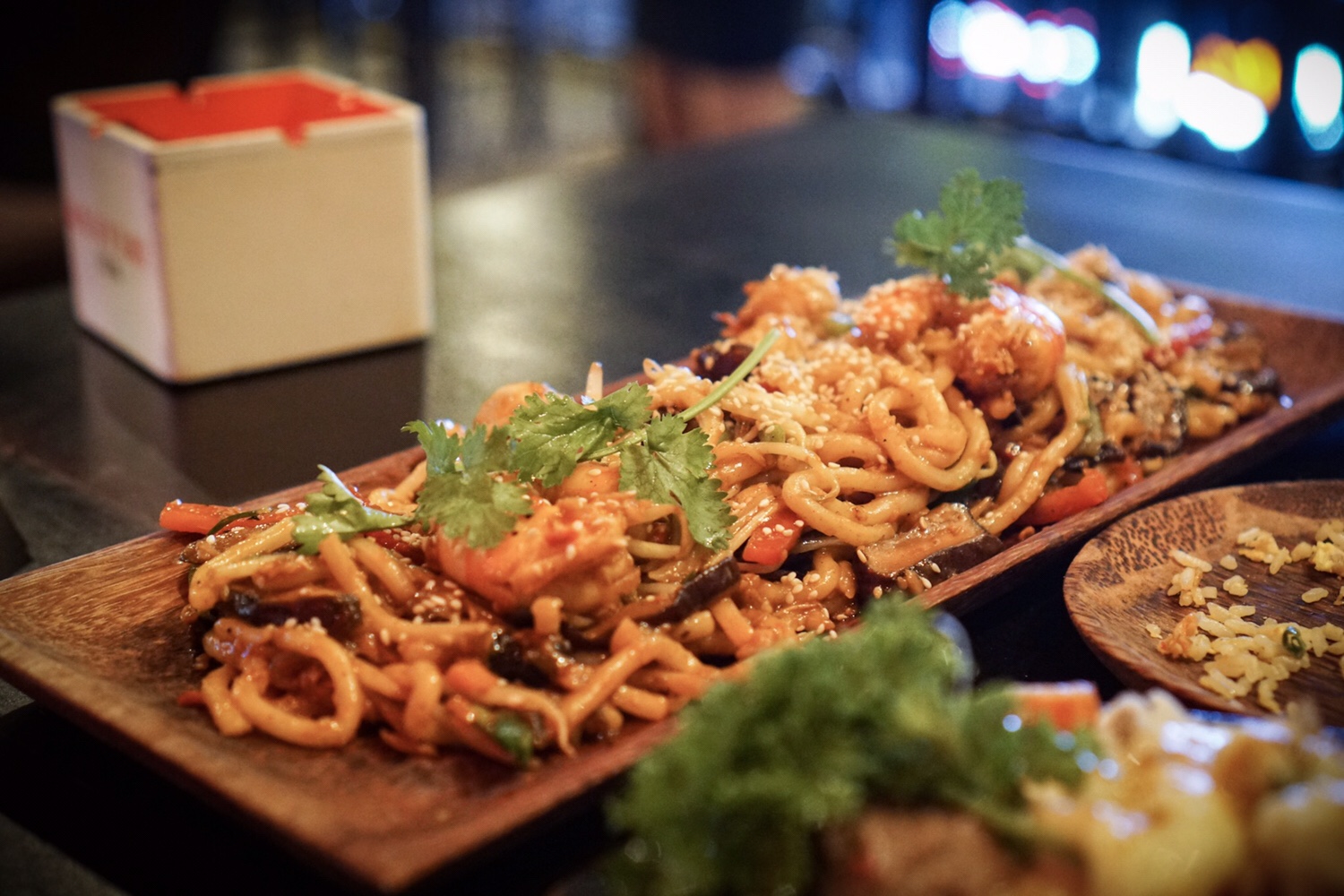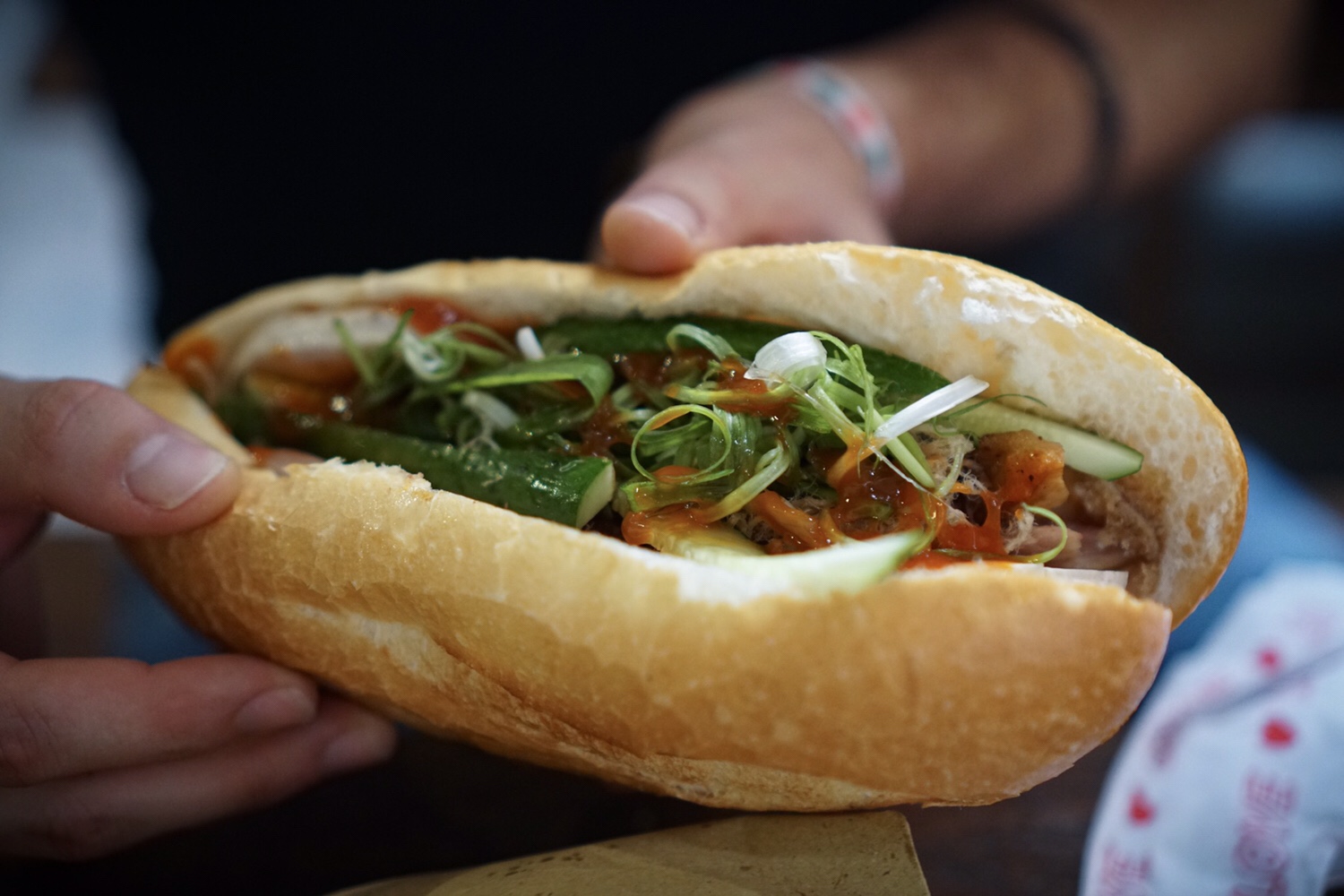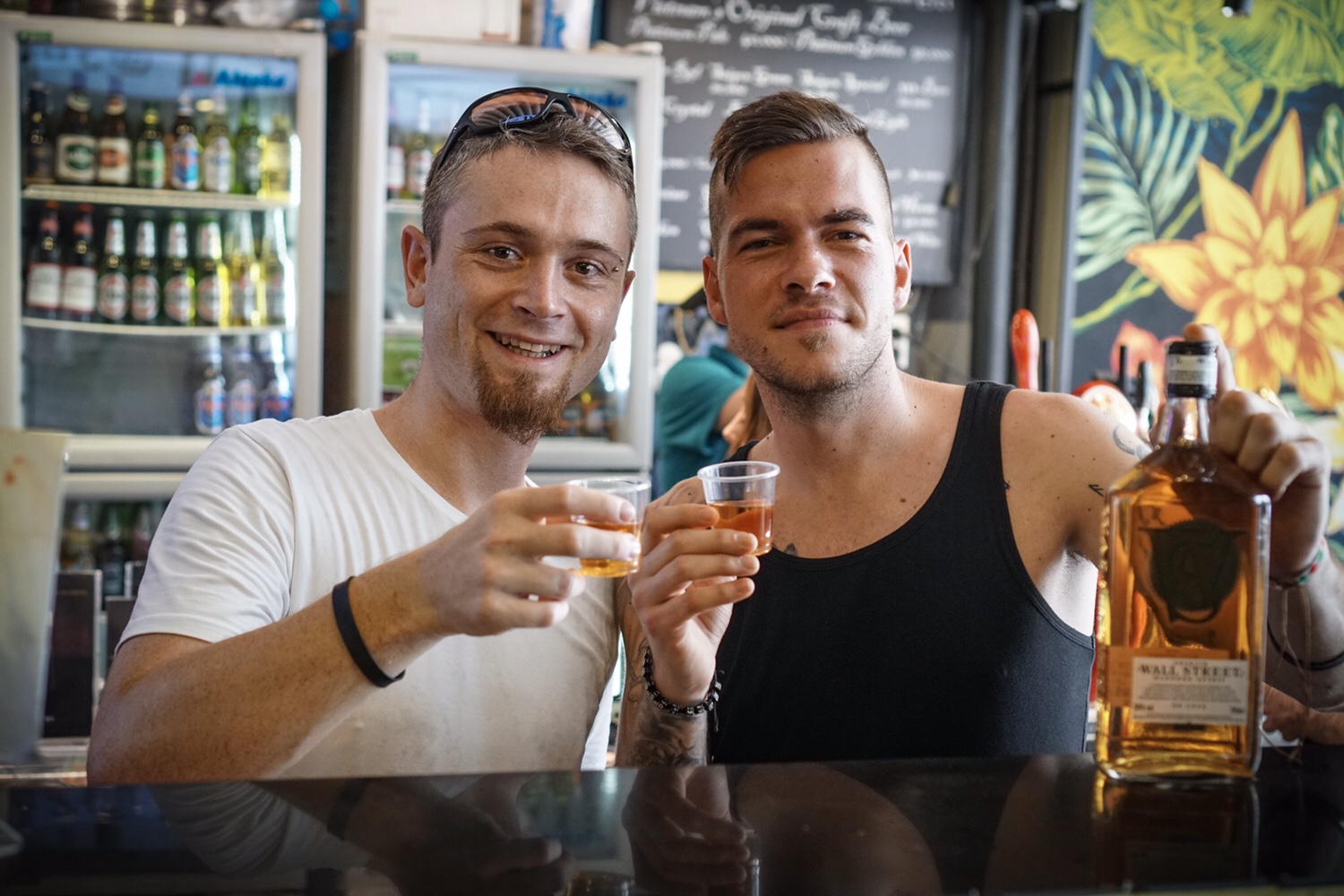 Unser Magen meldet Hunger! Passend, dass wir gerade an einer Street-Food-Halle vorbeilaufen. Ein paar StĂ€nde haben sich hier auf engem Raum mit drei ZwischengĂ€ngen zusammengefunden und bieten verschiedene Speisen zu fairen Preisen. Kevin kommt endlich dazu, sein ersehntes vietnamesisches Sandwich zu essen, dass wir schon an einigen StraßenstĂ€nden gesehen haben. Ich kann leider nicht am Inder vorbei und bestelle Butter Chicken mit Reis. WĂ€hrend wir wieder hinausgehen wollen, nachdem wir gegessen haben, bleib ich an einer Bar hĂ€ngen und frage den Barkeeper, ob es hier in Vietnam einen typischen Whisky gibt. Er lacht und zieht eine Flasche unter dem Tisch hervor. Ich rufe Kevin, der schon nach draußen gegangen ist zurĂŒck. „Zwei, bitte!“
