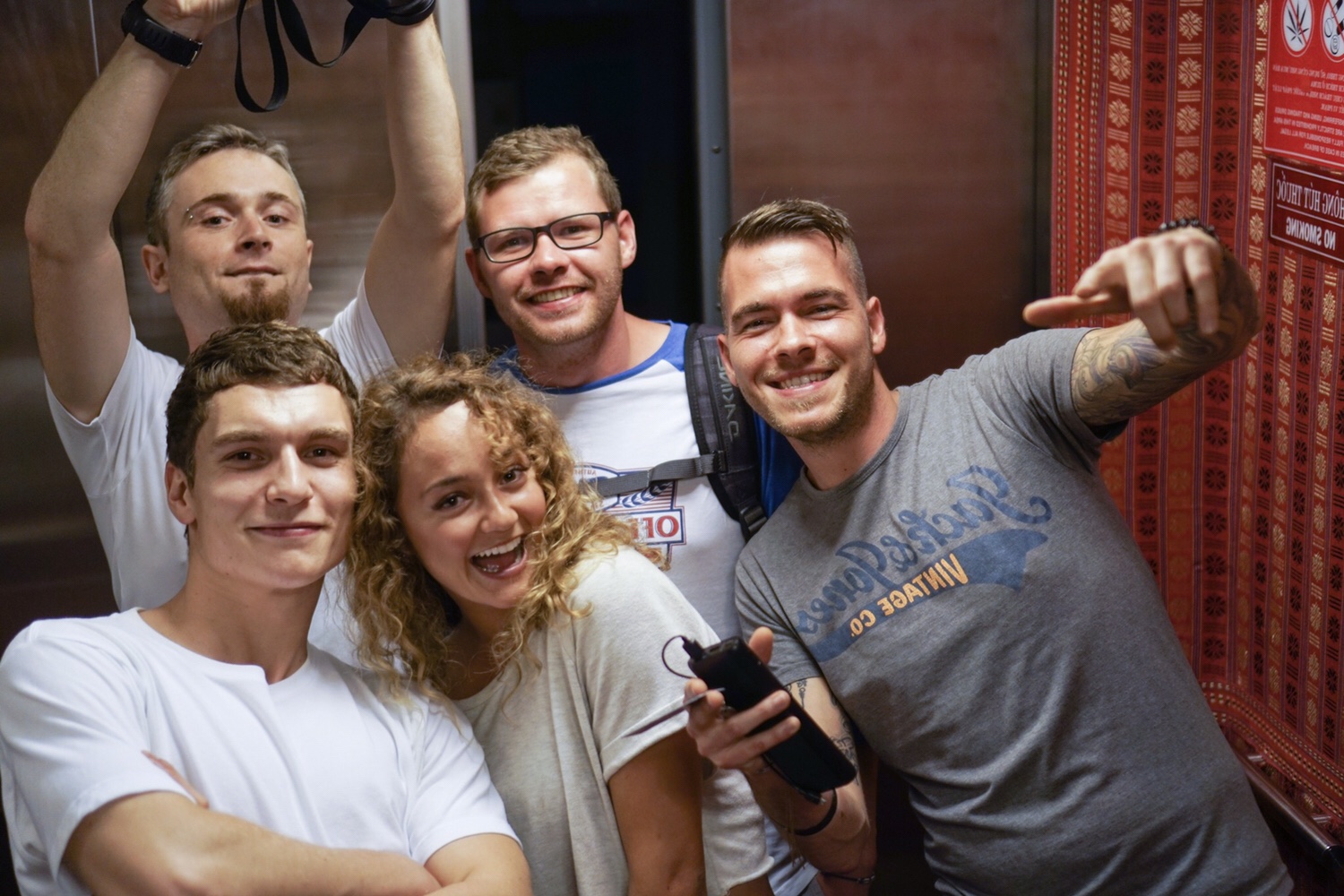 Der Trinkspruch der Vietnamesen wird zum Leitspruch des Abends. Kurtl, Kevin und ich gehen noch einen Sprung zu uns ins Hostel. Hier Stoßen wir mit dem Rest unseres Happy Waters aus den Bergen an.