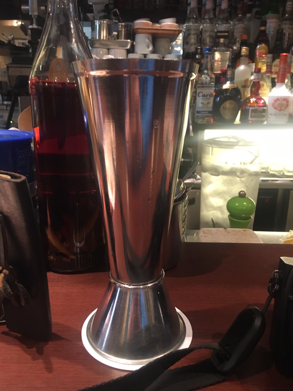 Am Weg zurĂŒck ins Hotel bleib‘ ich bei einer Bar hĂ€ngen. Schaut nett aus und scheint, als hĂ€tten die WLAN fĂŒr die GĂ€ste. So gehe ich hinein und setze mich an die Bar. Ich bekomme zwar die Karte, doch ich frage nach einem lokalen Bier. Der Kellner hat sofort einen Vorschlag und bekommt von mir auch sofort die Bestellung. Als er serviert, staune ich nicht schlecht! Das Bier wird in einem blechernen Kelch serviert. So etwas hab ich noch nie gesehen. Schmecken tut’s aber gut, nur ein bisschen blechern im Abgang.