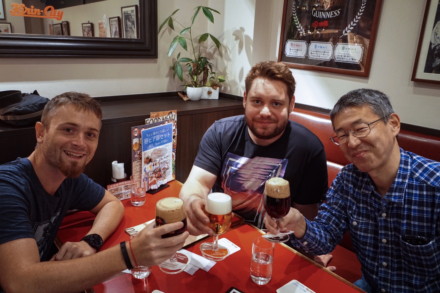 Auch Yoshi schaut durstig aus, weswegen wir ihn gerne auf ein Bier einladen möchten. Er meint, das geht nicht, weil er heute für uns Guide spielt. Doch wir sagen ihm, dass ein Bier nicht schaden kann und, dass wir wirklich gerne mit ihm anstoßen möchten. So lässt er sich kein zweites Mal bitten und bestellt auch ein Bier, wenn auch nur ein kleines.