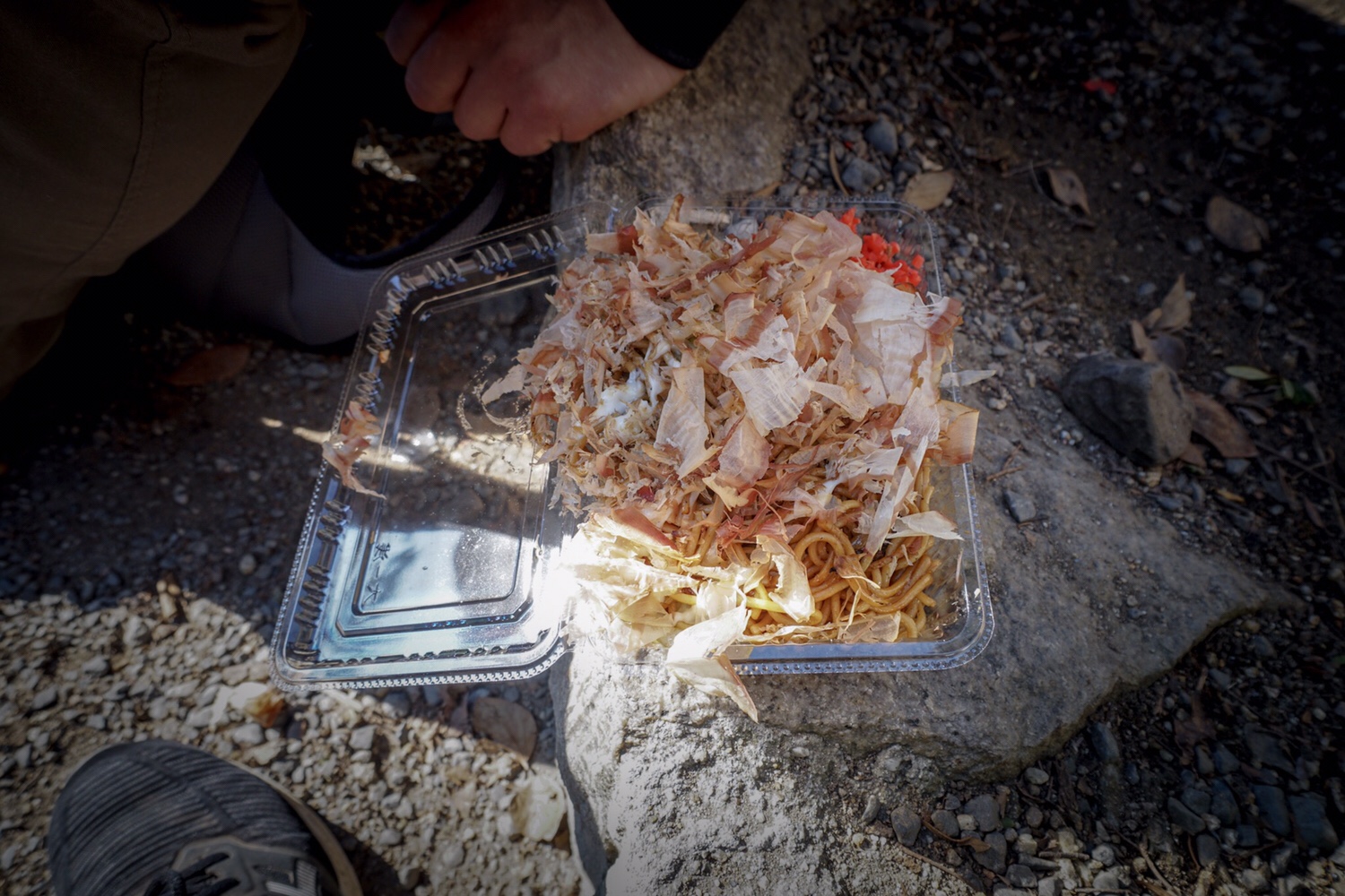 Die Konsistenz des Fleischs ist leider nicht so, wie wir das von zuhause gewohnt sind. Hin und wieder gibt es ein härteres Stück zu kauen. Ich bin nicht so zufrieden mit der Auswahl des Snacks. ABER neben dem gibt es noch andere Stände, wie zum Beispiel den von zwei Nudelköchen. Wer schon auf einem Festival in Österreich war, der kennt die Stände mit den Asianudeln.