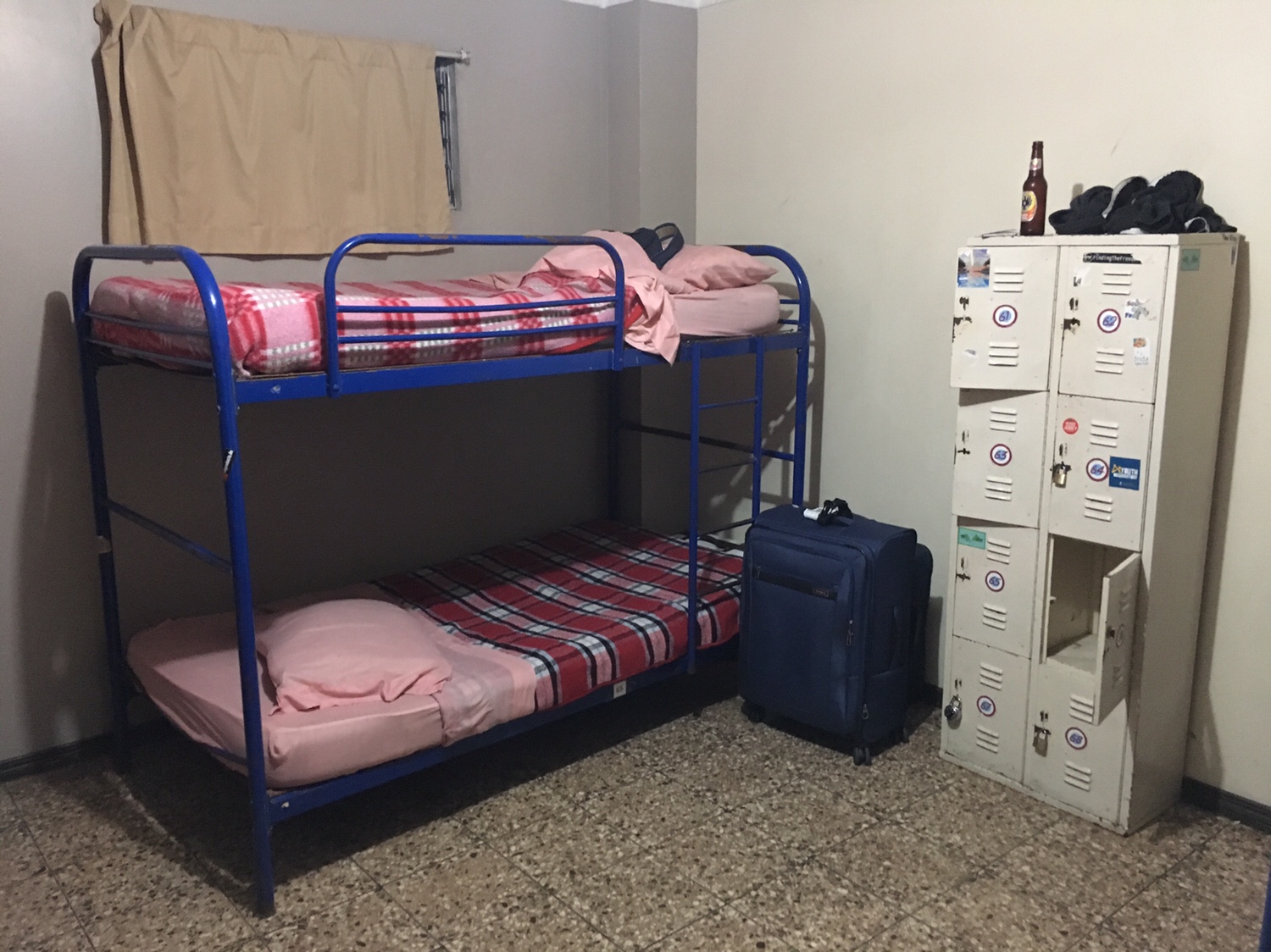 Im Hostel werde ich abgeliefert und muss dort noch kurz um die Reservierung zittern. Doch es klärt sich auch irgendwie und gemeinsam mit der einen Nacht bezahle ich auch das Bier, das ich mir gleich an der Rezeption bestellt habe. Ich beziehe das spartanische Sechsbett-Zimmer im Keller. Kurz nachdem ich reinkomme, kommt ein mexikanisches Pärchen dazu. Ich gehe mit ihnen zur Hostelbar und verbringe noch ein paar Stunden in netter Gesellschaft.