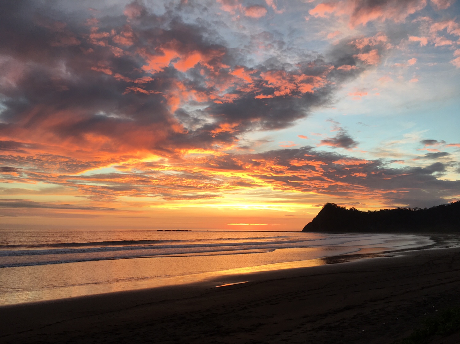 „Playa Barrigona“ bedeutet übersetzt „großer Bauch“-Strand. Hierher haben wir es nun endlich geschafft. Es ist kaum jemand da, es gibt hellen Sand und außerdem schöne Palmen, die Schatten spenden. Wunderbar! Im Moment fühlt es sich an, als hätte sich der beschwerliche Weg hierher gelohnt. Wir schmeissen uns ins Wasser uns genießen das warme Wasser, während Pelikane in unmittelbarer Nähe nach Fischen suchen und sich mit ihren Schnäbeln voraus ins Wasser fallen lassen. Es ist das erste Mal, dass ich ein Gefühl verspüre, dass ich mit dem allgegenwärtigen Ausdruck der Ticos „Pura Vida“ beschreiben würde.