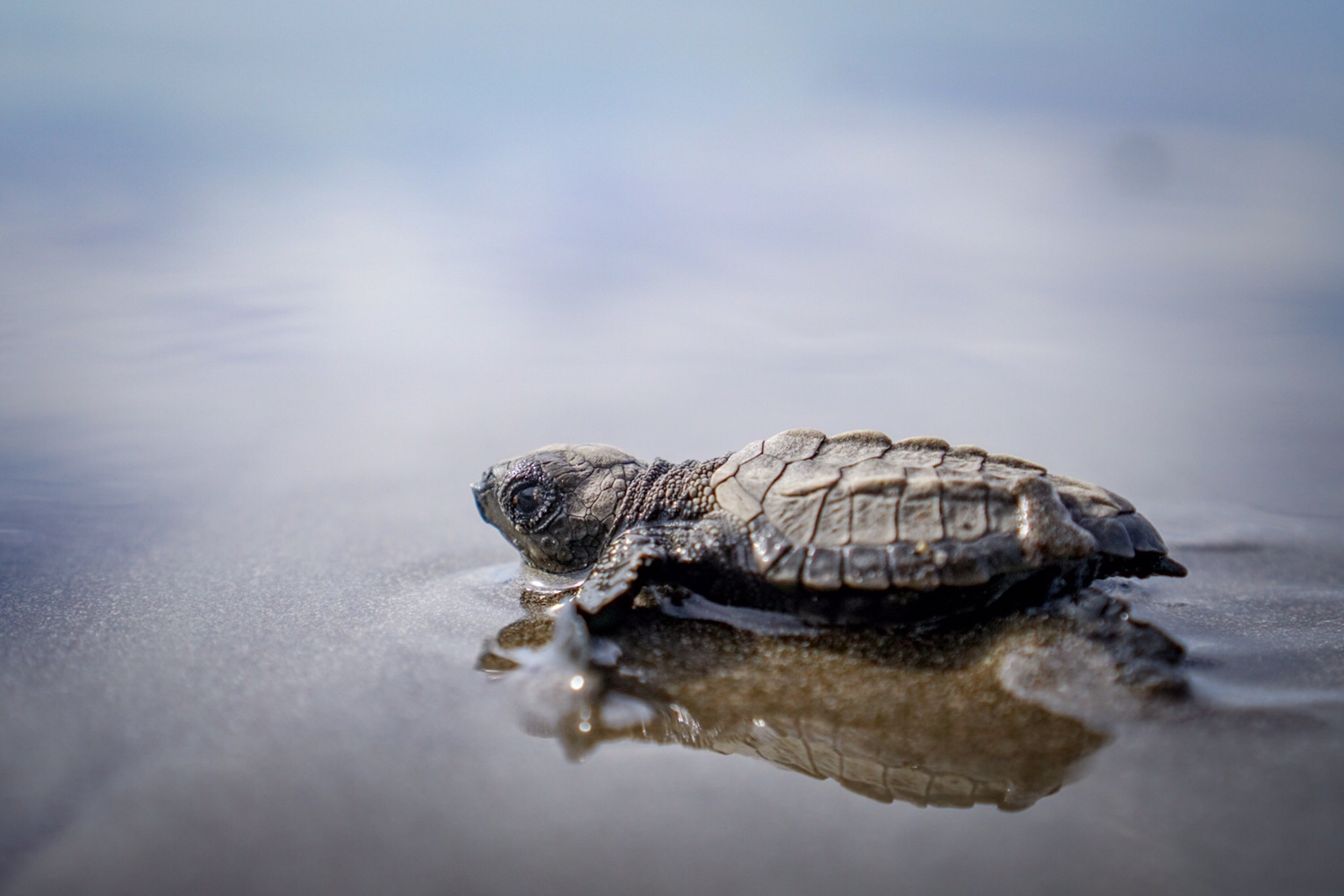 Am Weg zurück zum Camp sehen wir eine Gruppe Brüllaffen, die in dem Geäst über uns herum wandern. Sie sind im Vergleich zu den Gebrüll, das sie morgens veranstalten, sehr klein. Um circa halb sechs bzw. sechs Uhr beginnen die Affen im Wald neben dem Camp so tief aus den südlichsten Bauchregionen zu gröhlen, als wären sie so groß, wie Gorillas. Es hat auch ein Mann auf einem Fahrrad gehalten, der gerade vom Fluss kommt. Er fragt, ob wir da hin müssen und wir meinen, ja, wir müssen sogar durch. Dann meint er, wir sollen vorsichtig sein, er hat von der Stelle aus, an der wir den Fluss überqueren werden, ein Krokodil gesehen. Wir gehen weiter und setzen mit gemischten Gefühlen den ersten Schritt ins Wasser. Der Pegel ist relativ hoch, weshalb das Krokodil wahrscheinlich so weit flussabwärts gekommen ist. Wir können kein Krokodil sehen, was aber nicht bedeutet, dass es uns nicht sehen kann. Jedenfalls passiert uns nichts und wir können erleichtert zum Camp zurückkehren. Pünktlich um 16:00 Uhr sind wir da, als gleichzeitig auch meine Schicht beginnt. Es soll aber eine ruhige werden. Einzig ein grausiges Ereignis gibt‘s. Manchmal kommt es vor, dass die Babyschildkröten nicht innerhalb des Gitters, das wie ein Zylinder über dem Nest platziert ist, herauskommen, sondern außerhalb und deswegen freie Bahn zum Zaun der Brutstättenbegrenzung haben. Dort warten schon die Einsiedlerkrebse auf die in die vermeintliche Freiheit laufenden Babies. Heute finde ich fünf im Zaun. Drei davon kann ich aus den Maschen des Zauns nehmen und unversehrt in den Kübel zu den anderen legen. Eines muss ich herausschneiden, wozu ich mir aus der Küche ein Messer holen musste und – ACHTUNG, jetzt wird’s grausig – eines der Babys hat leider die Stelle mit den Einsiedlerkrebsen erwischt, die ihm bei lebendigem Leib die Augen herausgefressen haben. Der Kopf ist blutig, aber es versucht immer noch vorwärts zu kommen. Mindestens fünf Krebse hängen auf dem Jungen. Ich verscheuche sie und versuche, das Baby rauszubekommen. Auch dieses hat sich ordentlich verhängt, doch am Ende kann ich es rausholen. Ich lege es nicht zu den anderen, denn es wird wohl nicht lange dauern, bis es verendet. Nach zehn bis 15 Minuten im Sand, ist es dahin. Ich grabe es vor der Brutstätte ein. So ein armes Ding, aber Gott sei Dank passiert das nur selten im Vergleich zur Menge an Babies, die wir unversehrt zum Strand bringen können.