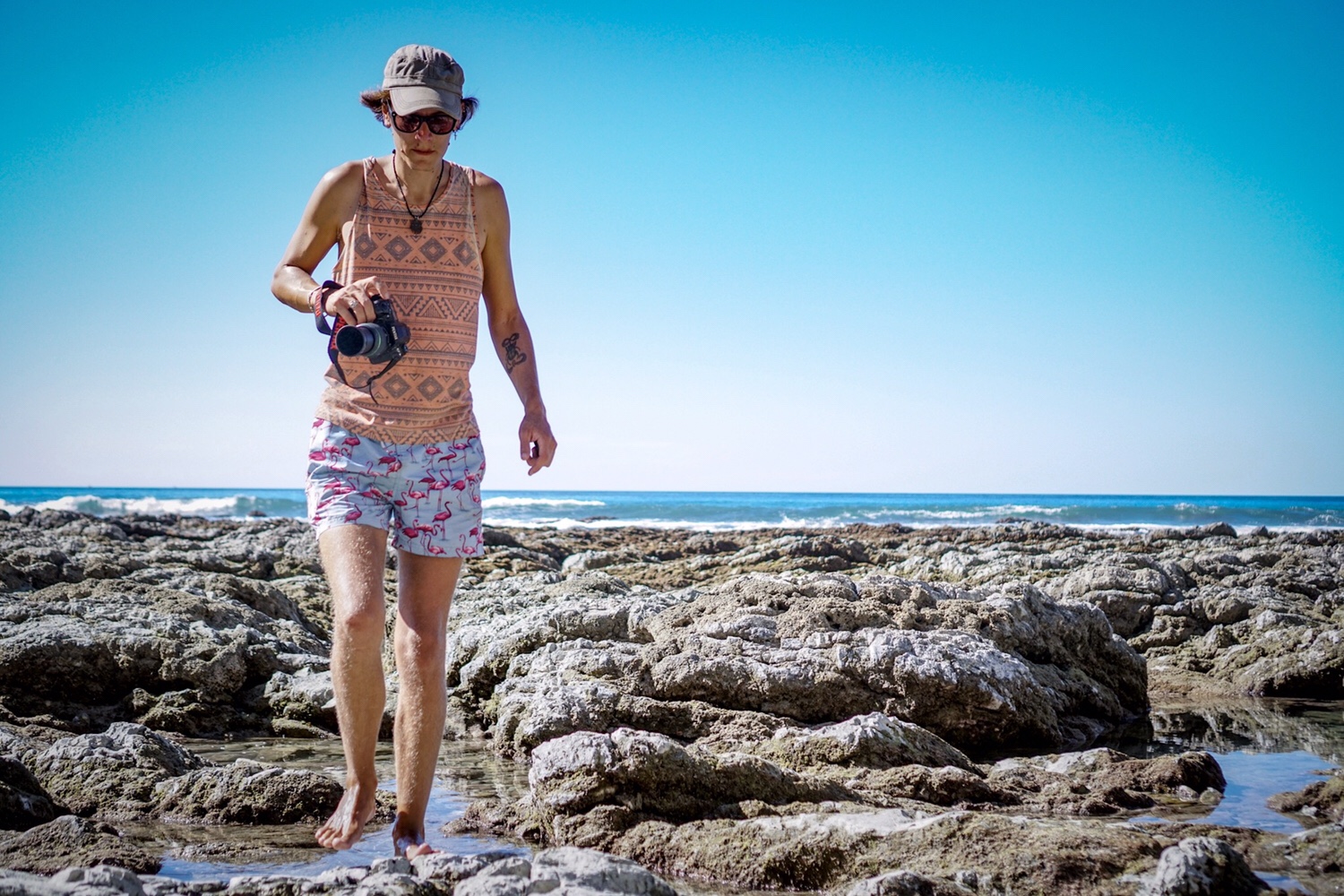 Gestern Abend war Roy mit der Family in Samara bei einem Rodeo. Weil er ausgehen konnte, dürfen wir heute Vormittag zu einem benachbarten Strand gehen. Anfangs ist der Marsch dorthin noch in Ordnung, weil wir einfach nur den Strand entlang laufen. Dann müssen wir über scharfe Felsen um‘s Eck gehen, um in die nächste Lagune zu kommen. Der Weg über die Felsen zieht sich, weil wir nur langsam voran kommen. Dann die Ernüchterung: Wir müssen noch viel weiter auf den blöden Felsen laufen. Der Strand ist weiter entfernt als gedacht.