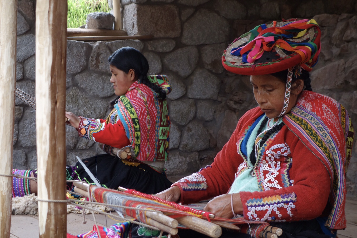 Im dazugehörigen Museum zeigen Peruaner, wie die Wolle gesponnen und gefärbt wird und auch, wie die aufwändigen Muster in die Stoffe gewebt werden. Für den richtigen Kontrast sorgt ein kleines Kind, dass inmitten der sorgfältig hergerichteten Kulisse eines einfachen peruanischen Hauses auf einem sprechenden Lerncomputer herumdrückt. Wir finden es lustig.