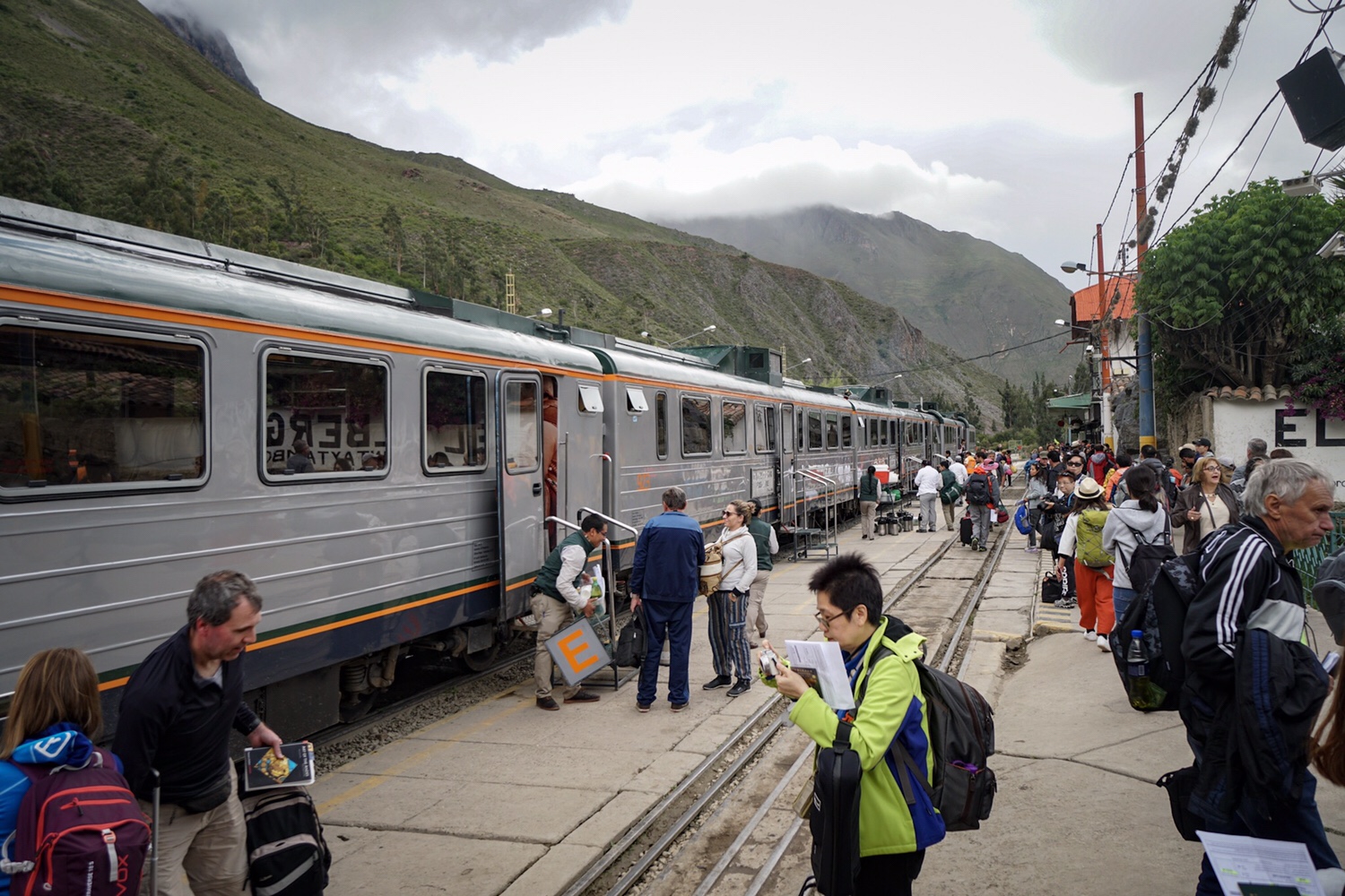 Vom Hotel in Aguas Calientes holen wir unsere RucksĂ€cke und gehen zum Bahnhof. Im Zug haben Bernie und ich leider genauso wenig GlĂŒck wie beim Hinfahren – gegen die Fahrtrichtung und auf der Bergseite. Wenigstens spritzt es nicht beim Fenster rein. Endstation ist Ollantaytambo, wo wir vom Busfahrer empfangen werden. Diesmal geht es zwei Stunden ohne Sightseeing Stopp zurĂŒck nach Cusco in das Hotel, wo wir die großen RucksĂ€cke abgegeben haben. Die Fahrt nach Cusco ist ein Horror, weil der Chauffeur Ă€hnlich wie der auf den Philippinen fĂ€hrt und die Straßen noch schlechter sind. So ist der ganze Transfer eine einzige Katastrophe, die den nahezu perfekten Vormittag in den Schatten stellt, weil ich mich so Ă€rgere.