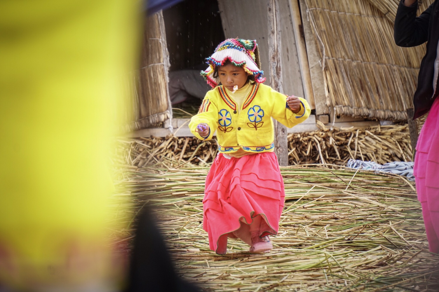 Der See ist mit seinen knappen 4.000 Metern Höhe das höchste schiffbare Gewässer auf unserer Erde. Es gibt ein Volk, das als schwimmende Nomaden auf und von dem See lebt. Sie heißen Uros und wir werden eine kleine Gemeinde in Kürze besuchen. Leider beginnt es auf dem Weg dorthin zu regnen, sodass sich nur ein paar Bilder am Oberdeck des Bootes ausgehen.