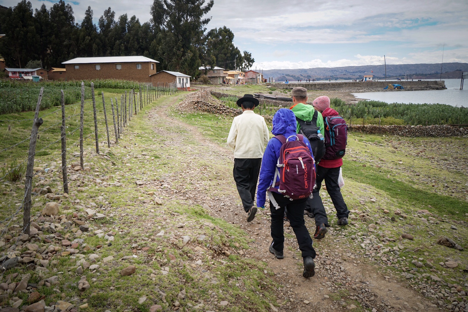 Wir dürfen unser Hauptgepäck im Hotel lassen und brauchen nur das Notwendigste für den heutigen Tag. Der Titicacasee ruft! Leider haben die Wolken den Himmel verdeckt und es ist deswegen kalt auf 3.800 Metern Seehöhe. Das Taxi steht schon vor der Tür und holt uns und andere Leute von den Hotels ab. Wir werden zum Hafen gebracht, wo wir bald auf ein Boot wechseln.