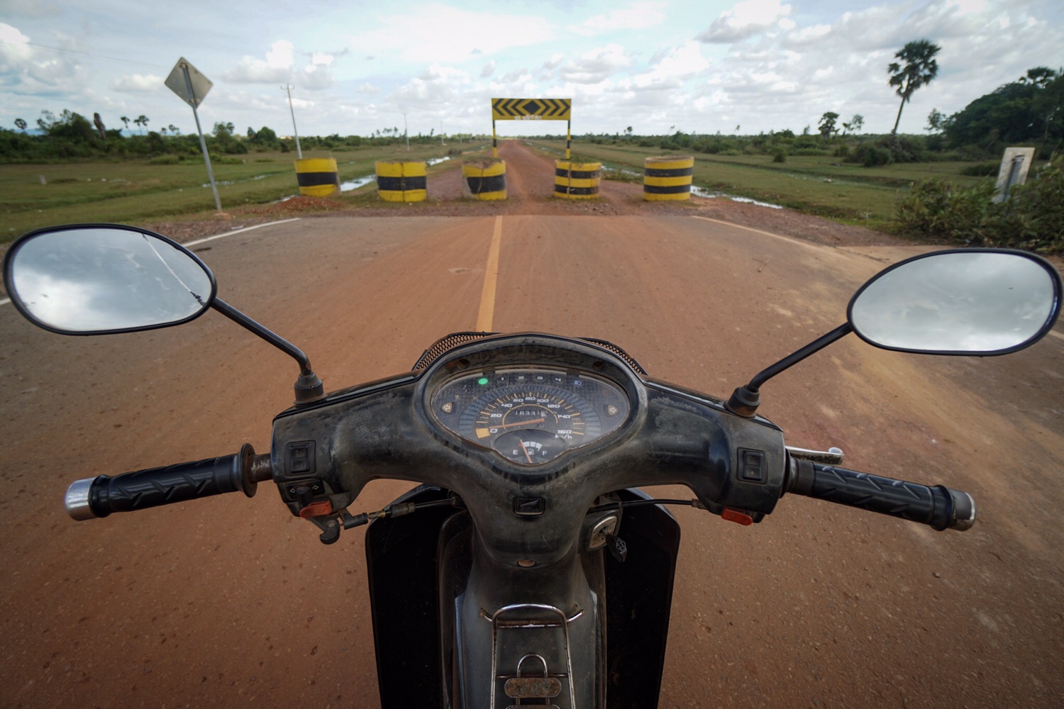 Endlich ist es soweit! Ich darf selbst ein Motorrad lenken. Die heutige Tour beginnt relativ christlich um viertel neun. Der Kanadier Scott leitet die Tour, die durchs kambodschanische Hinterland führen soll. Bei der Abholung fahren zwei Motorräder vor, wobei bei einem schon eine Person als Beifahrer drauf sitzt.
